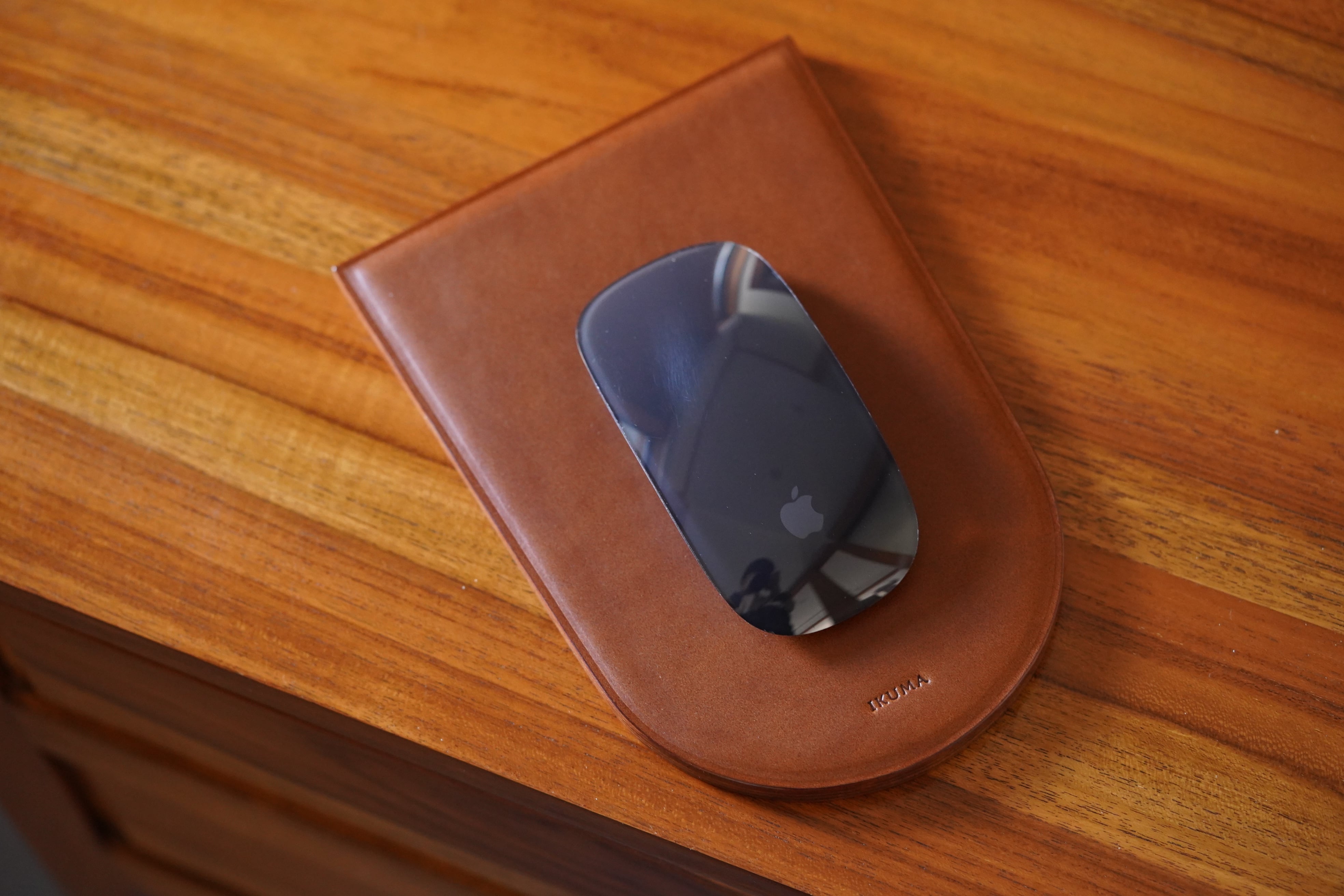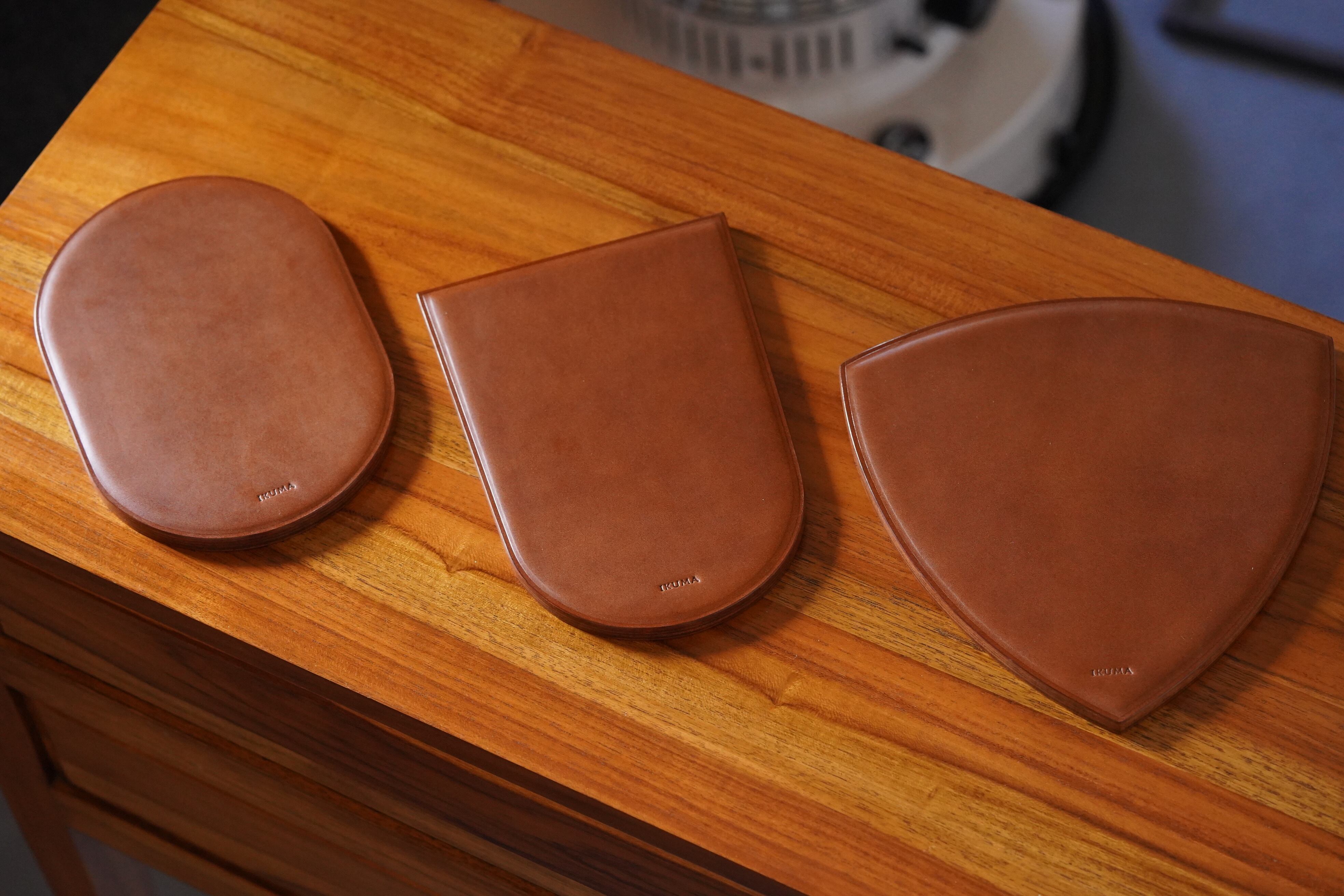 革靴が好きなのですが、靴底の積み革(革を積んである部位)がかっこいいなぁと常々感じていました。積み革を模したトンネル型(トンネルの入口の形をモチーフにしました)のマウスパッドを製作しました。