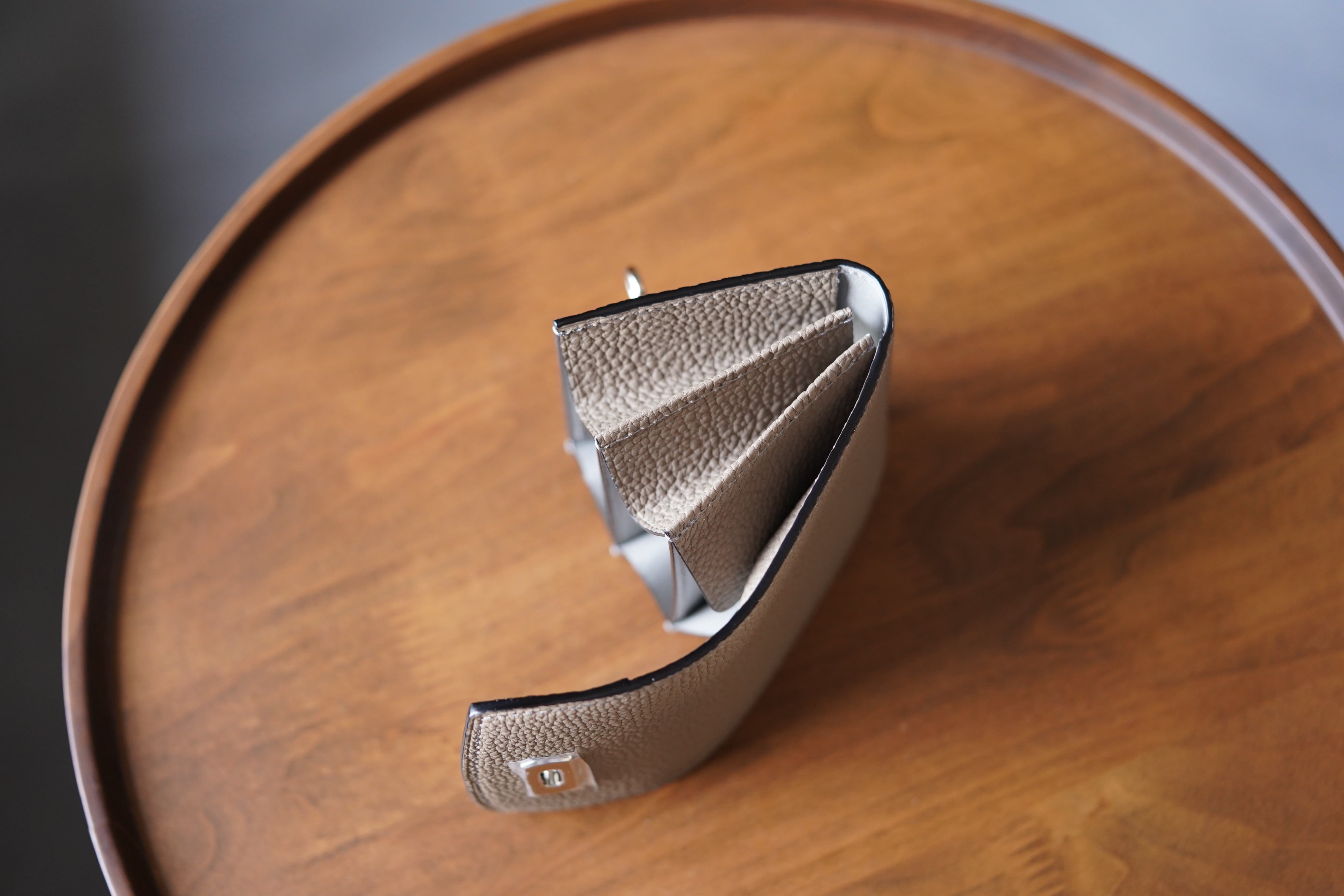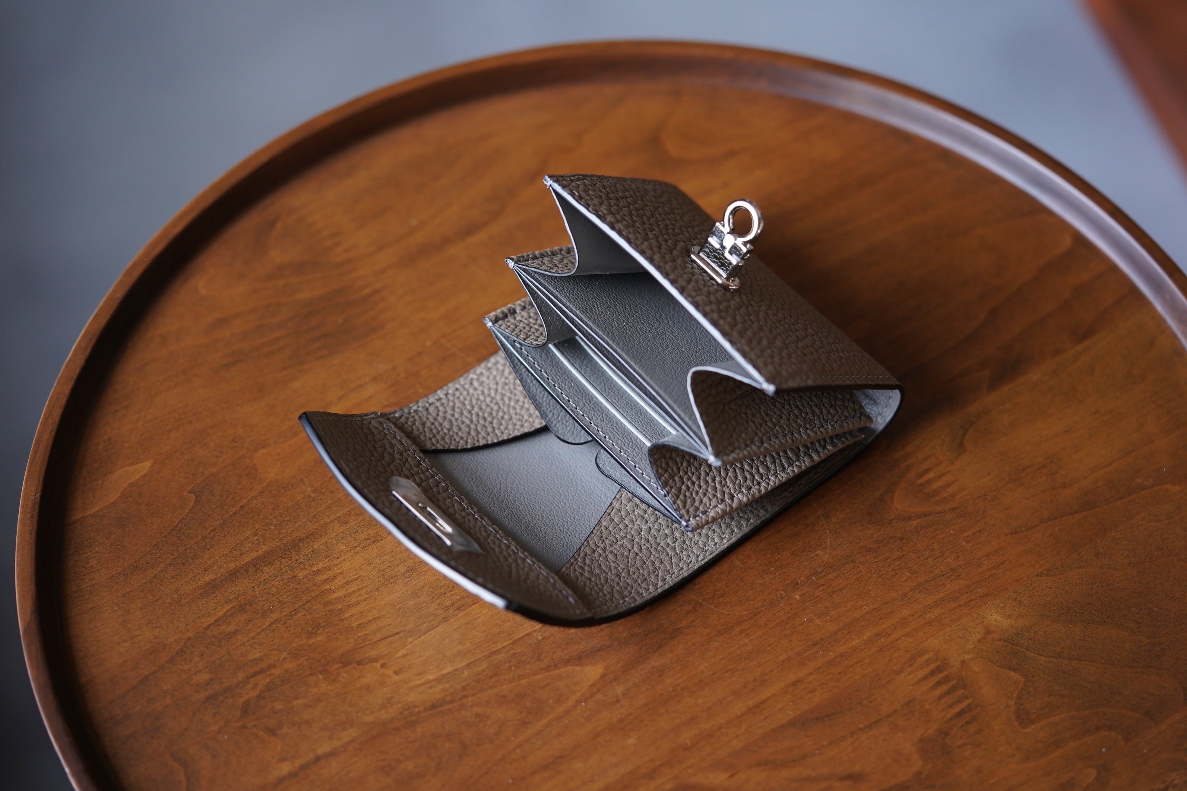 ギャルソンウォレットの特徴であるコイン収納の使い勝手・視認性は確保しつつコンパクトに仕上げました。