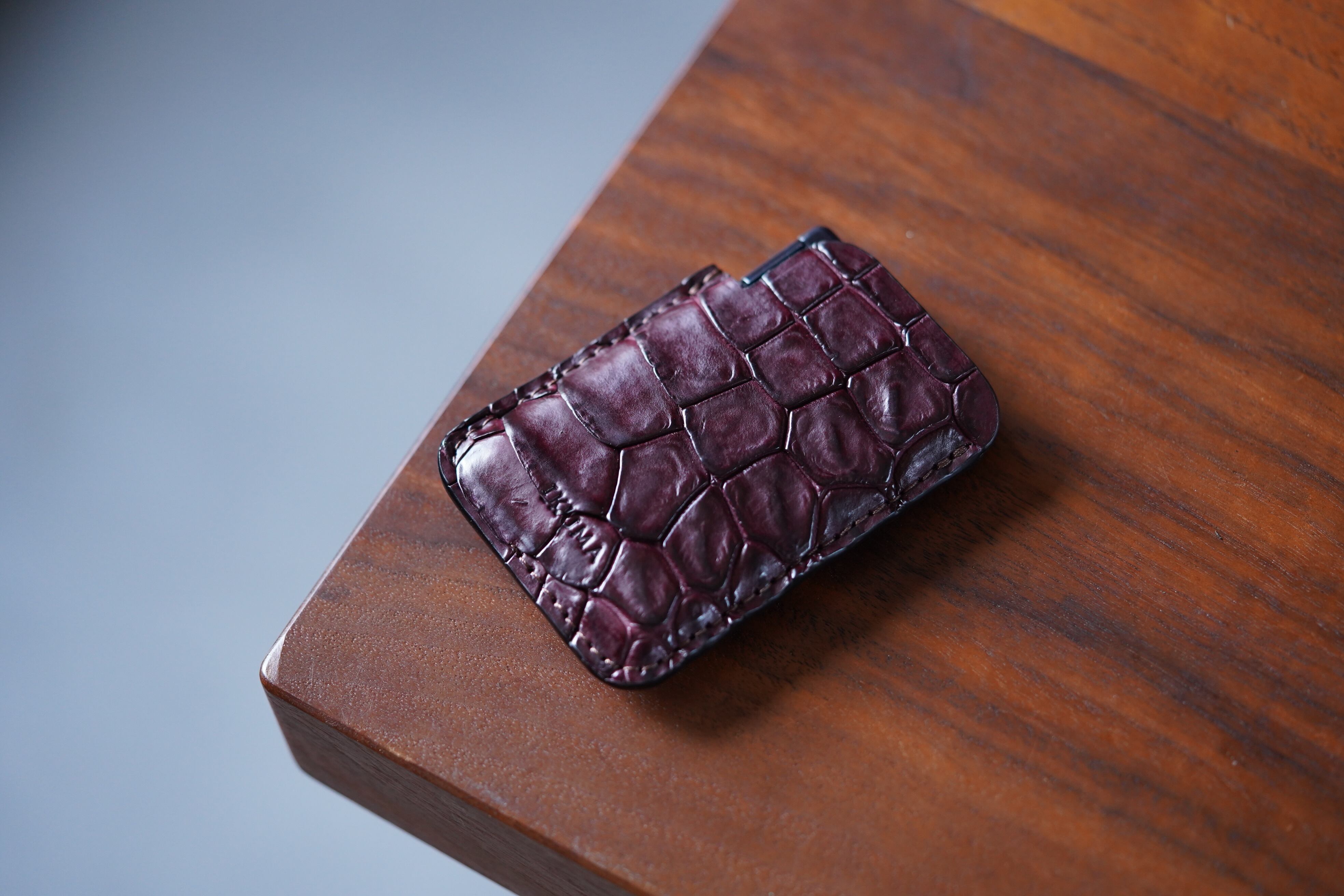 クロコダイル(シャムワニ)の染料染めです。使用に伴い色が深く変化して光沢が増してゆきます。