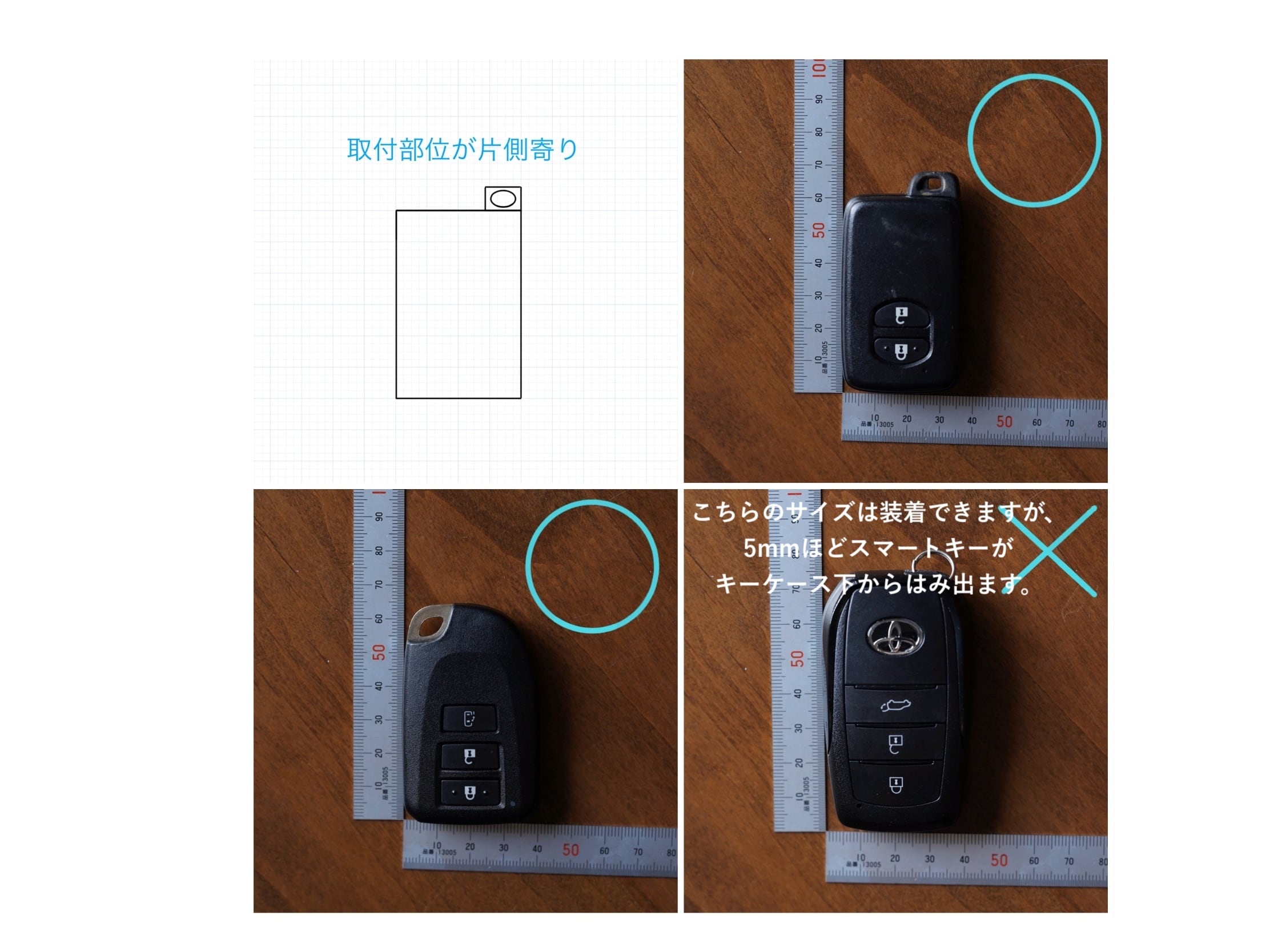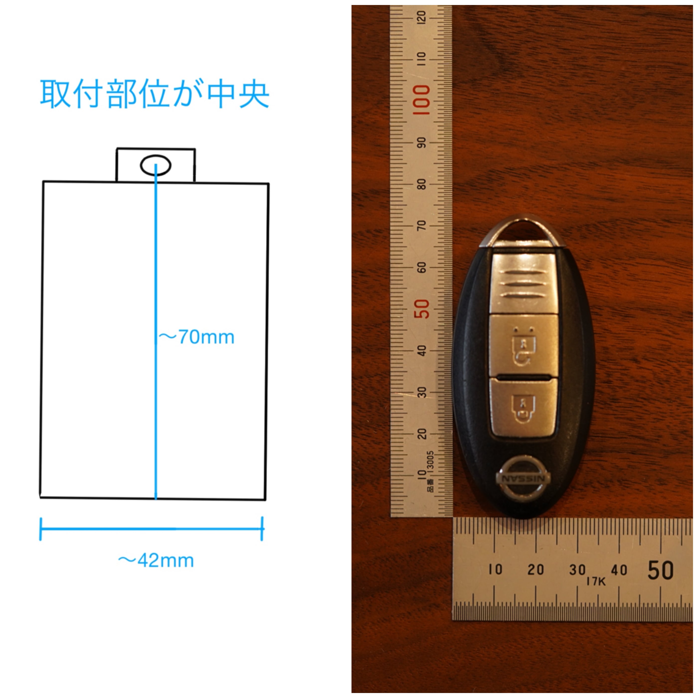 ☆取り付け位置が中央にある場合は【縦×横:70mm×42mmのスマートキー】まで収納可能です。