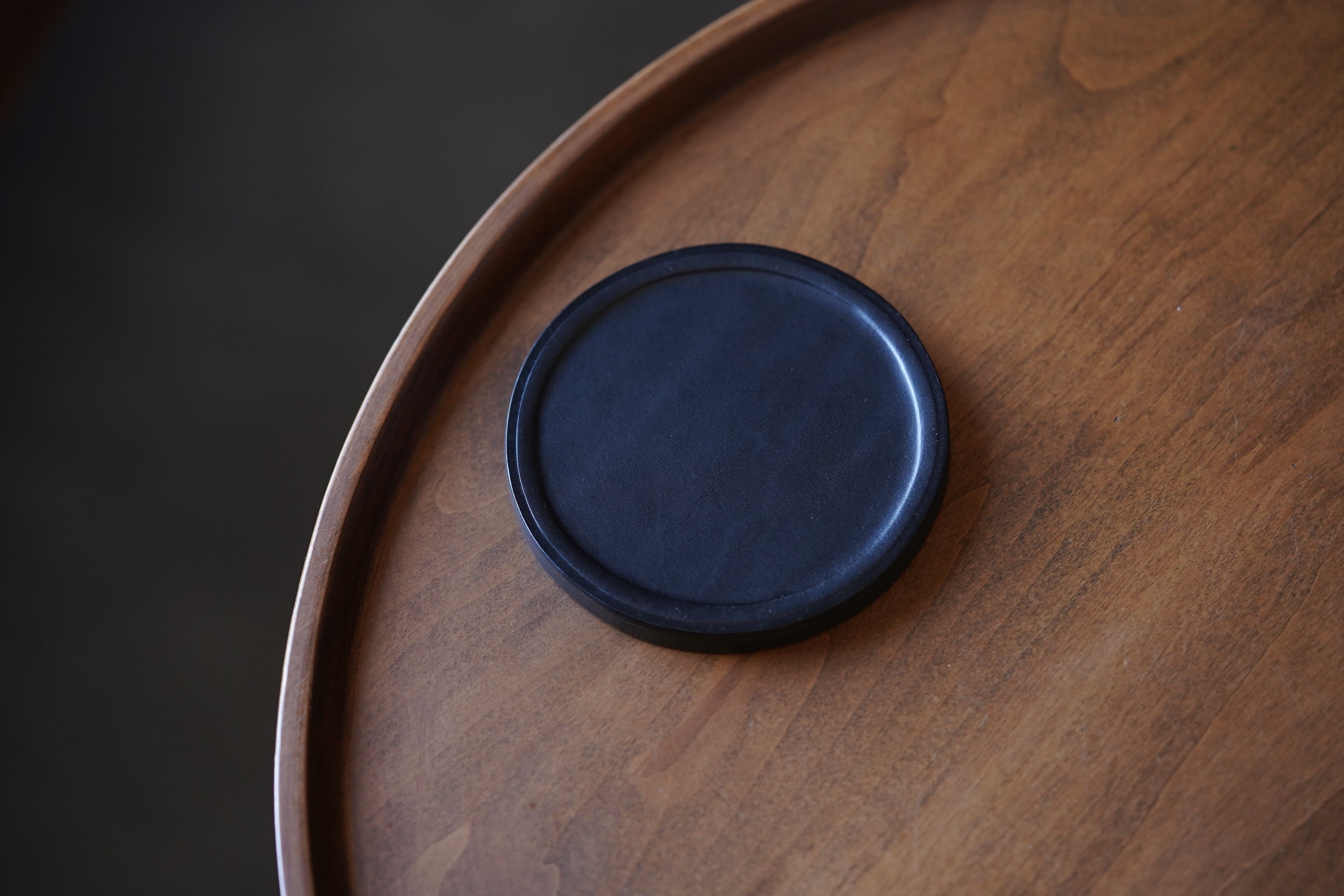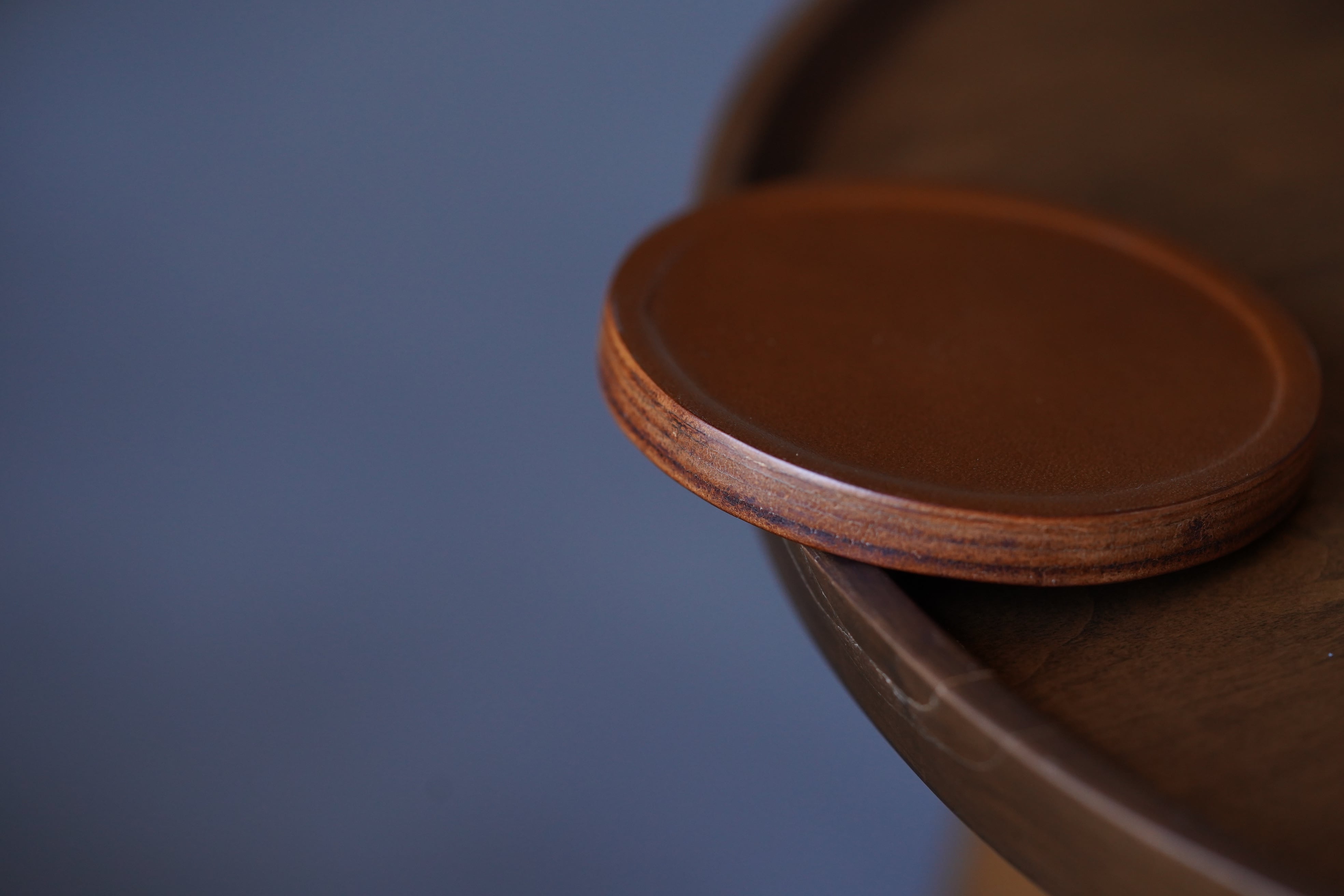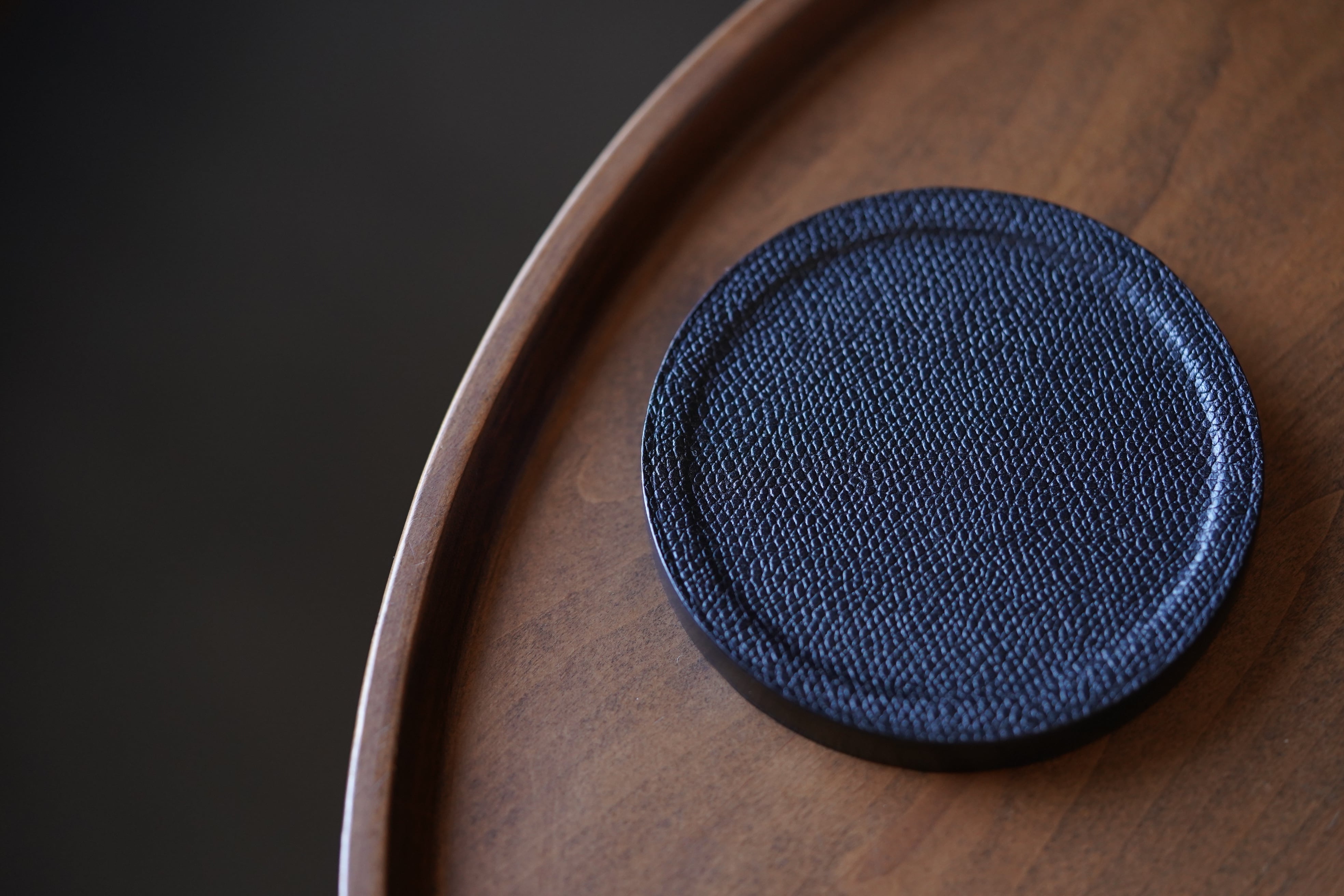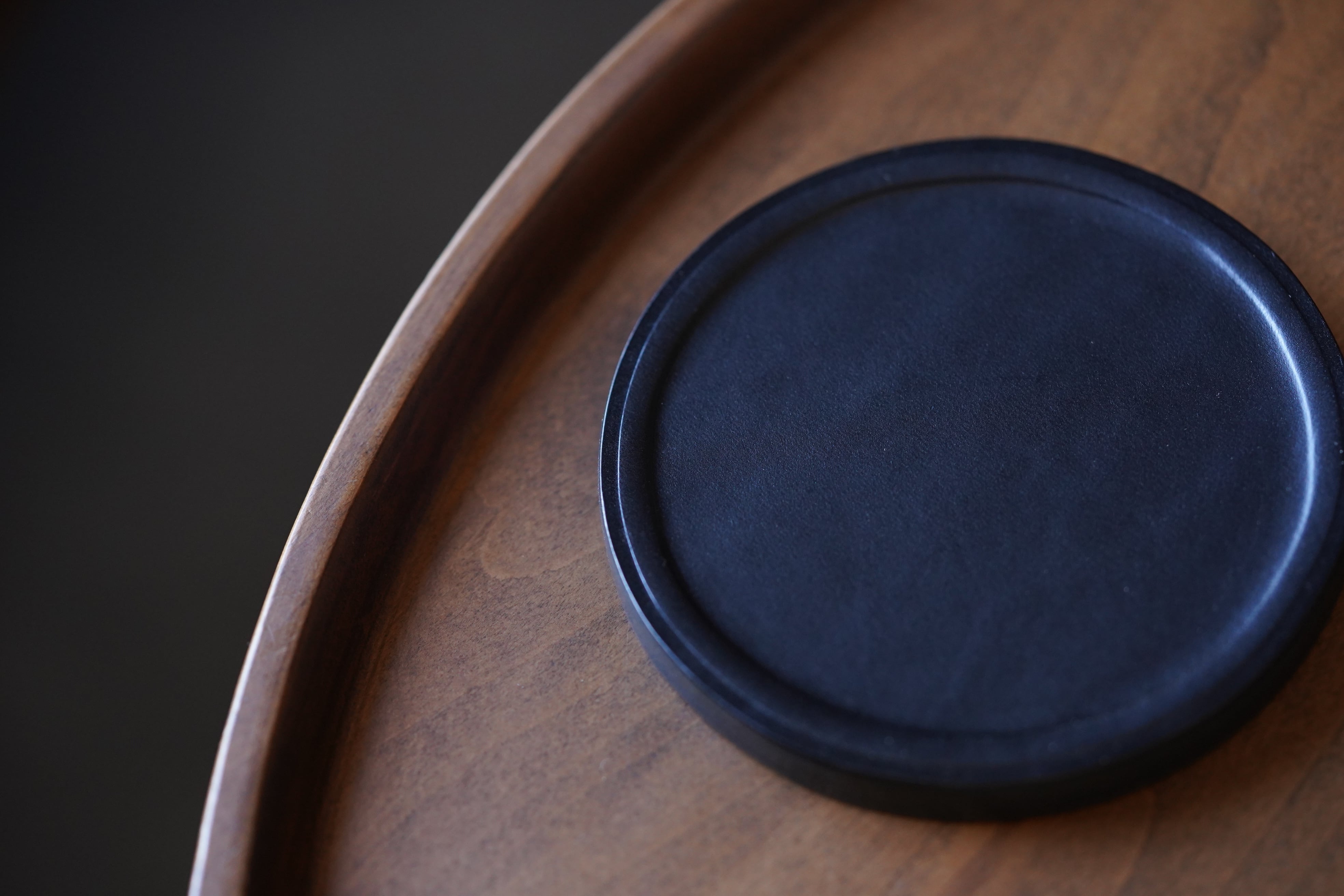 積革(つみかわ)という革を重ねる技法で製作したコースター。