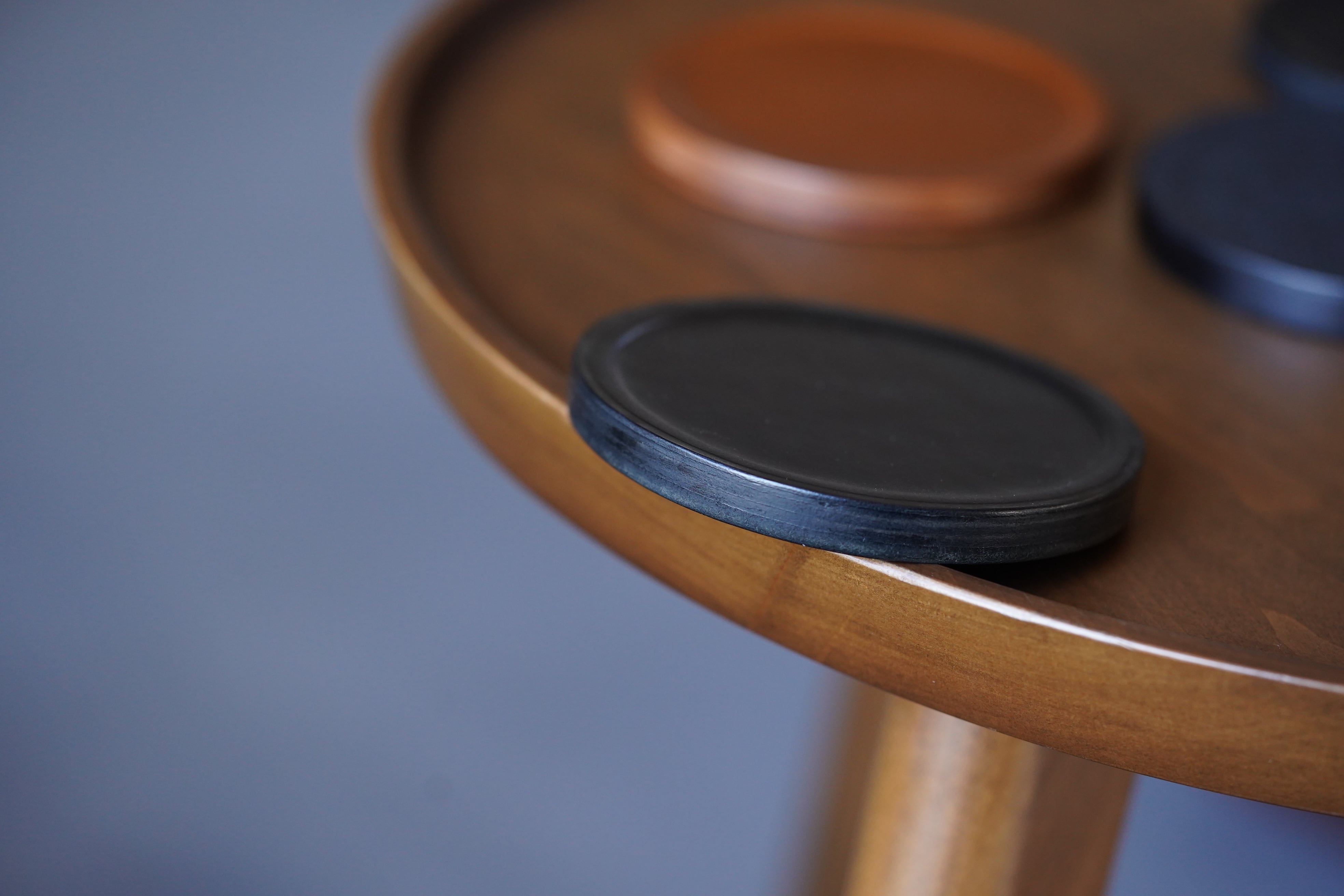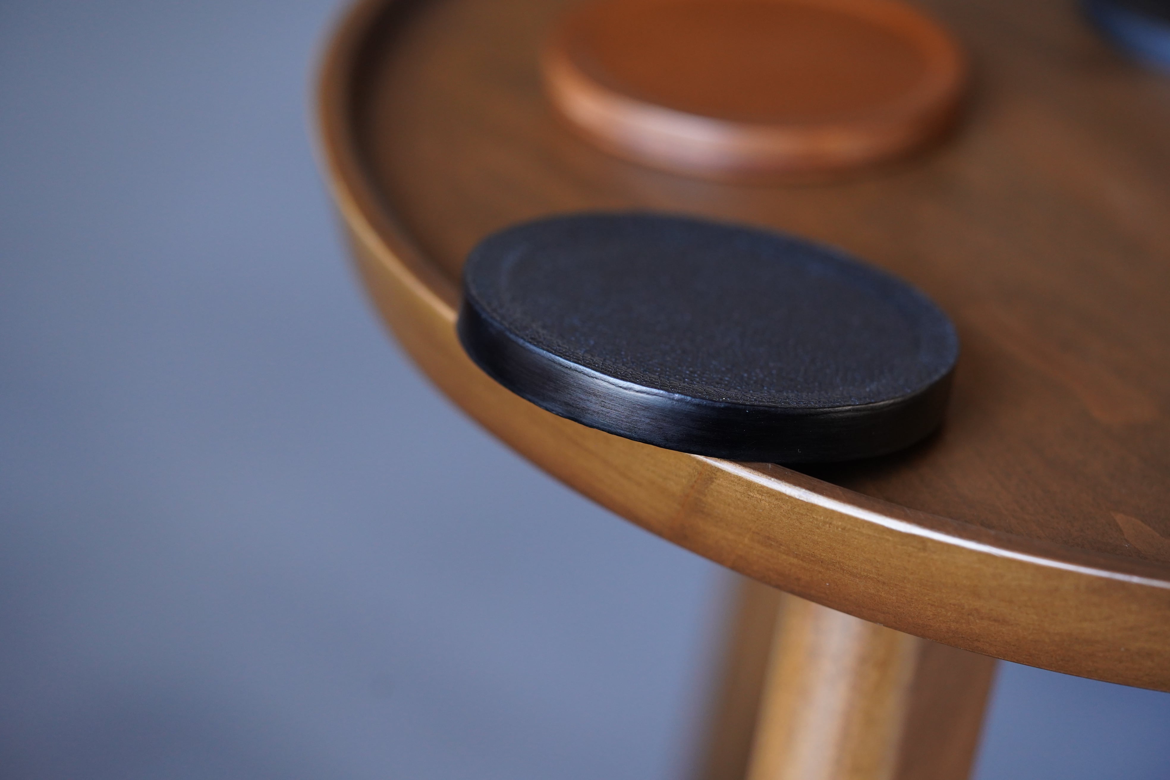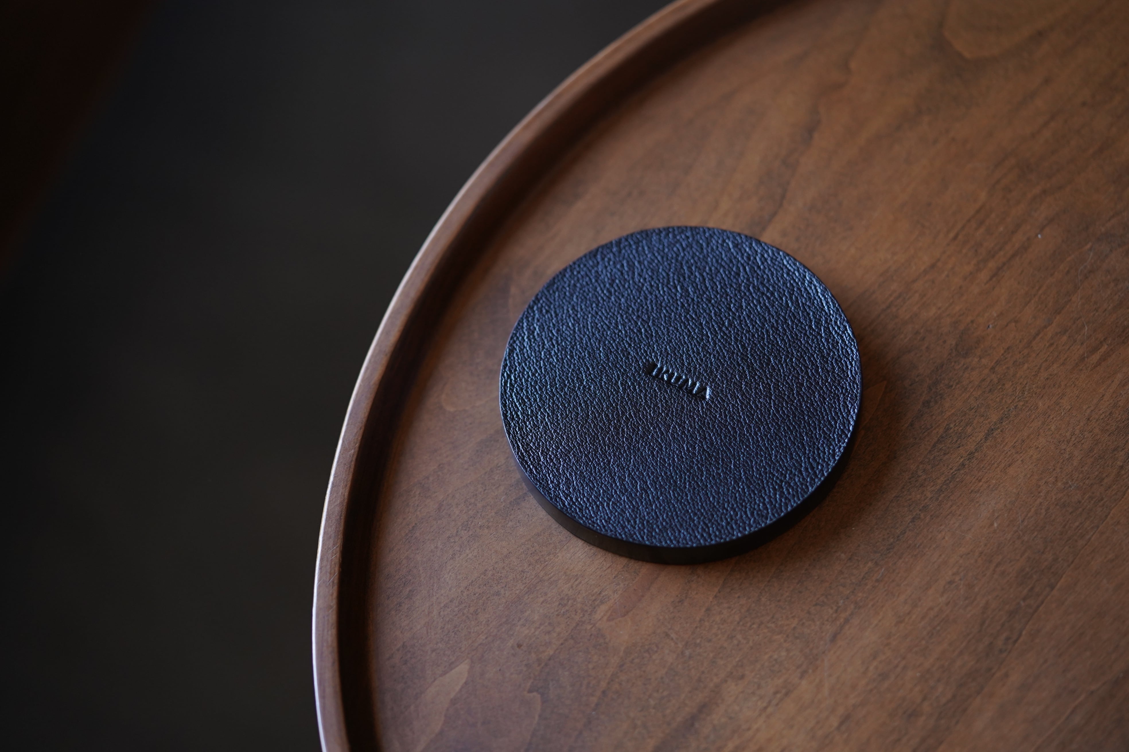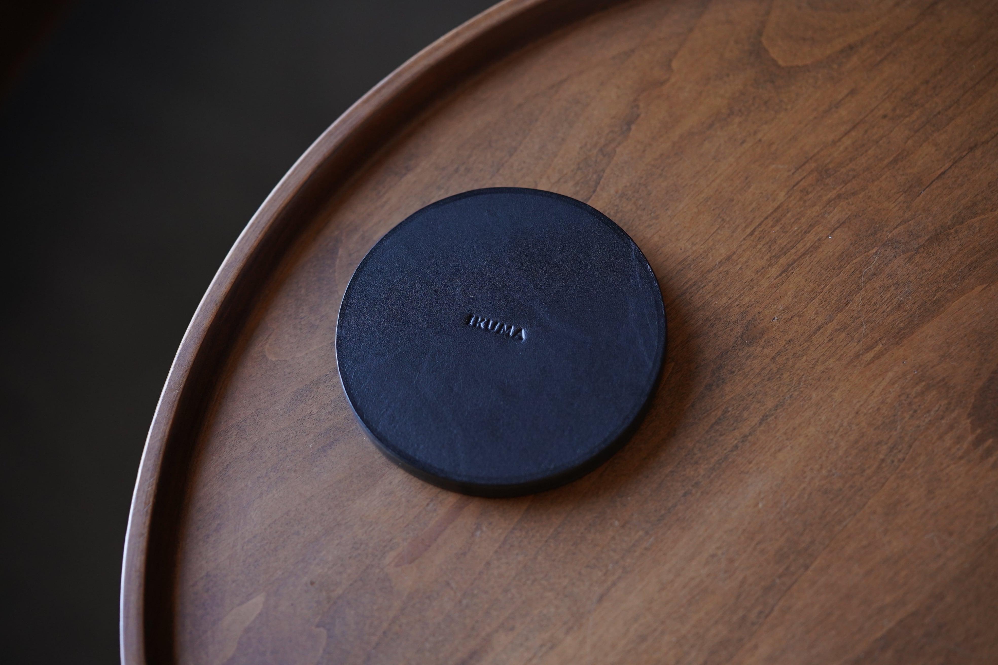 積革(つみかわ)という革を重ねる技法で製作したコースター。