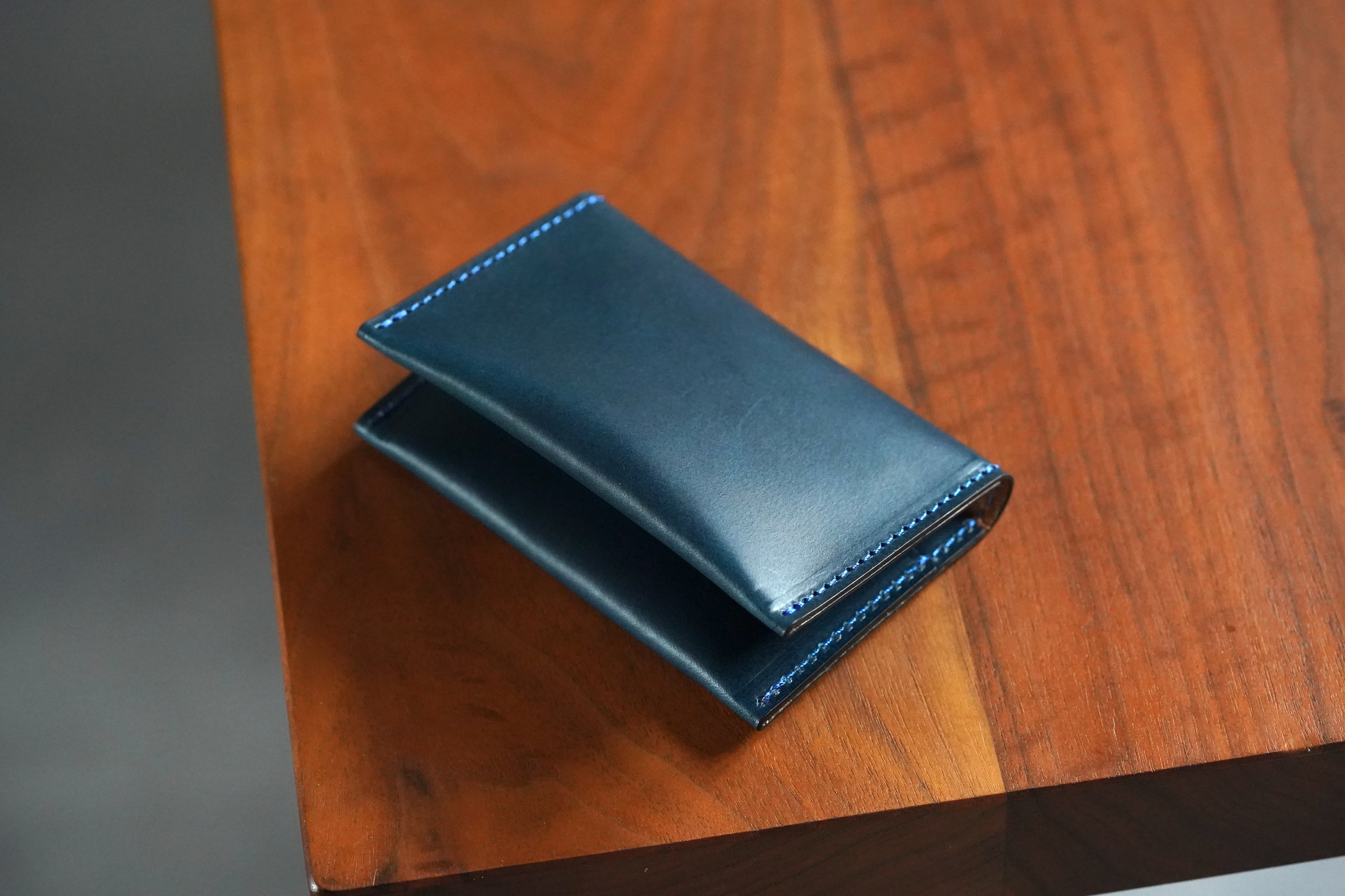 「名刺を少量しか携帯しないので薄い名刺ケースが欲しい」「スーツの内ポケットに入れた際に厚みがでないものがいい」というお声から製作した名刺ケースです。