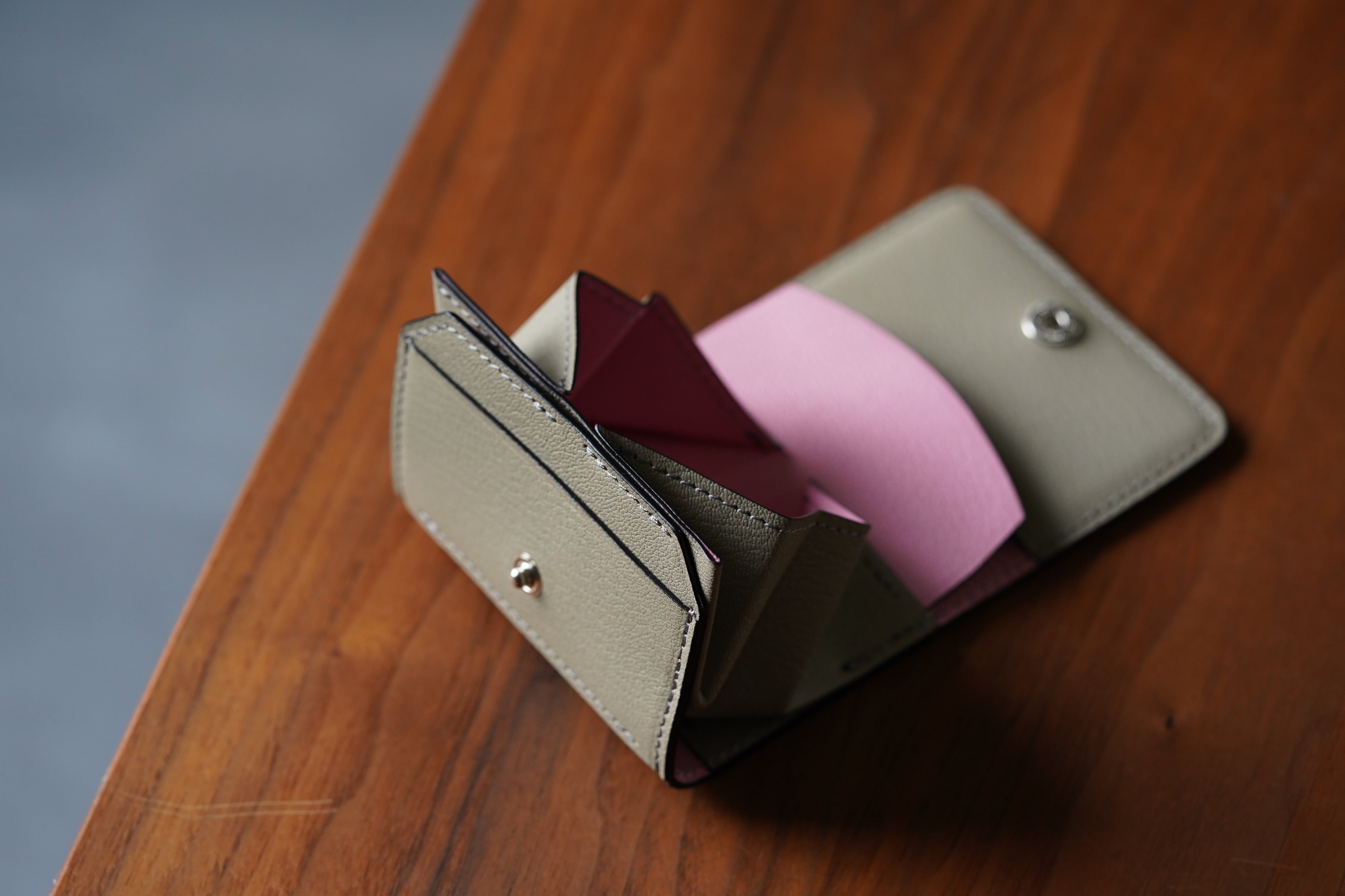 お札、小銭、カードがコンパクトに収納できる三つ折りウォレットです。
