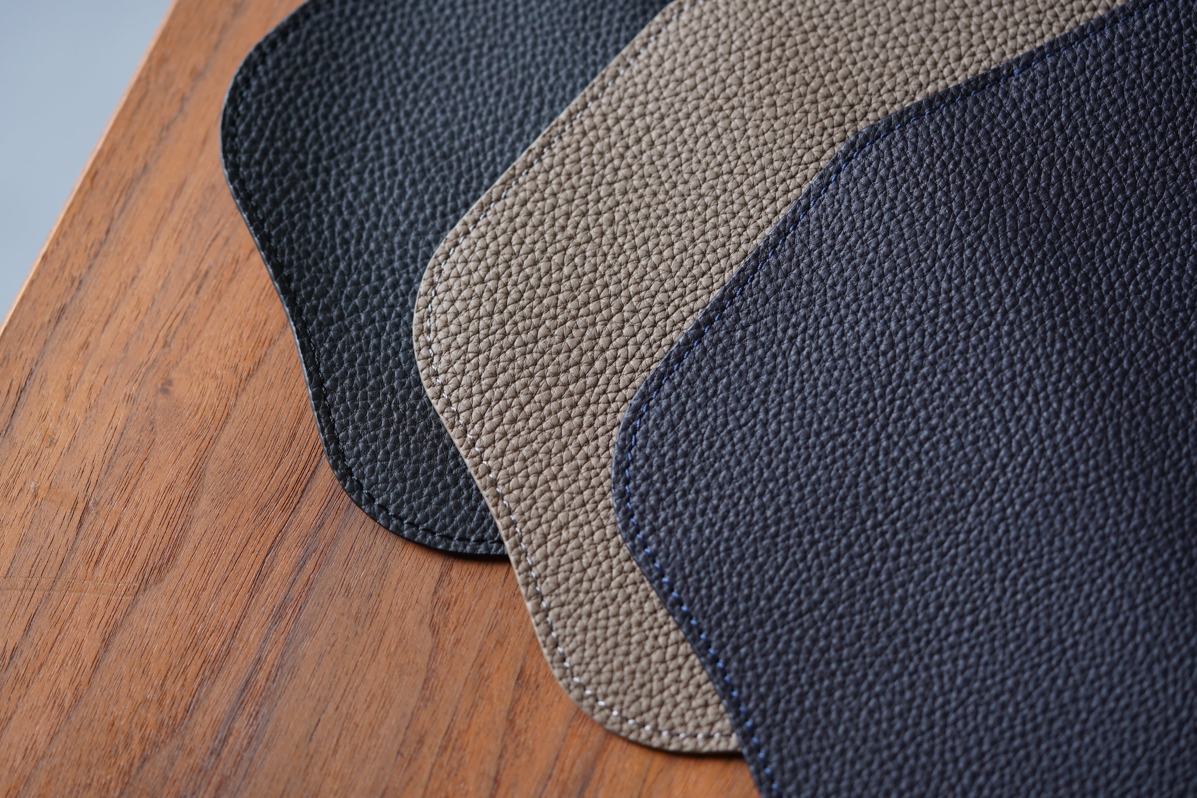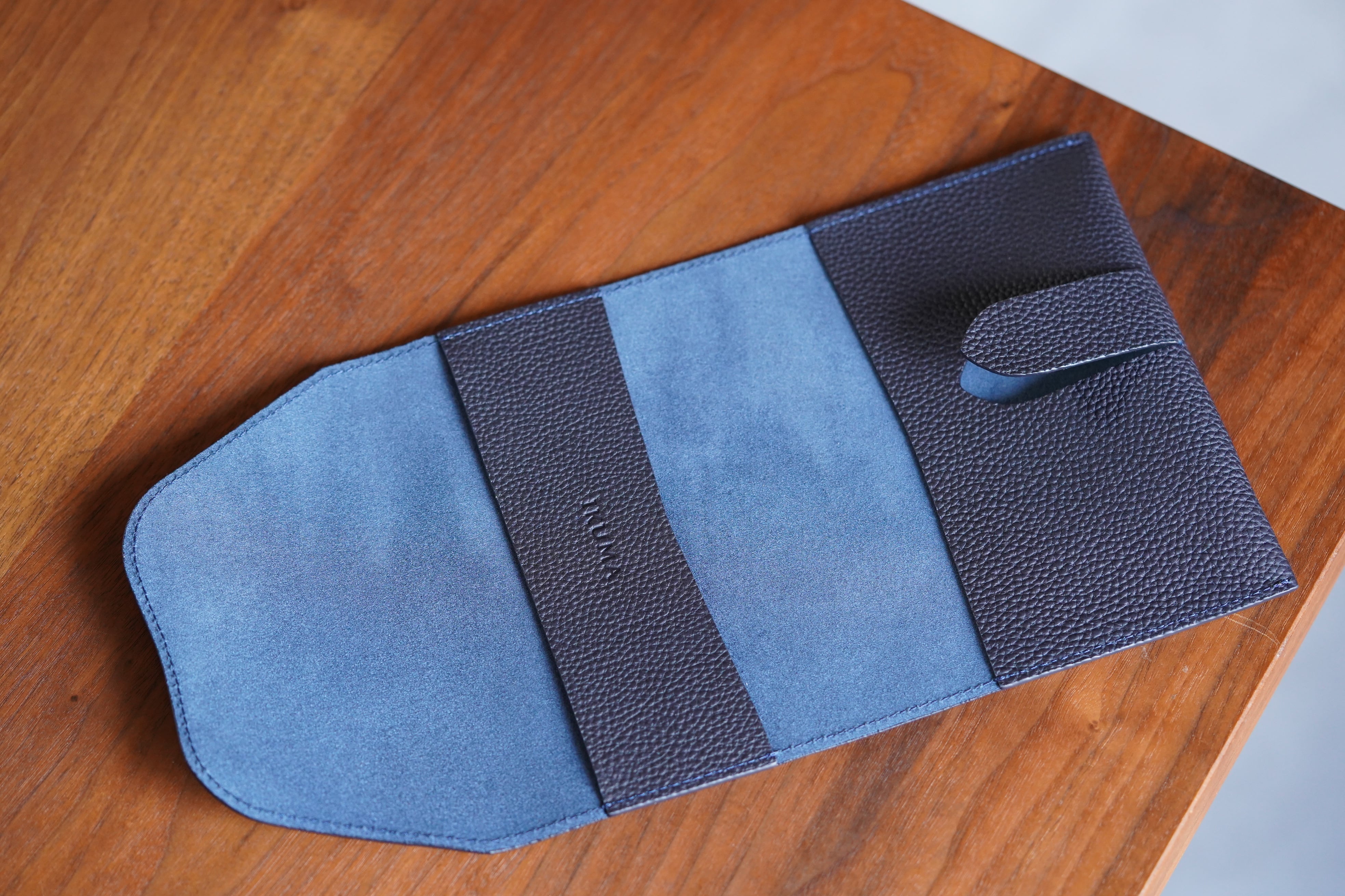 カーフとよばれる子牛の革をクロムで鞣しています。カーフはしなやかで肌理が細かく柔らかいのが特徴です。鞣し剤で収縮させた不均等で深いシボは、キズや曲げ伸ばしに強くキズが目立ちにくいです。